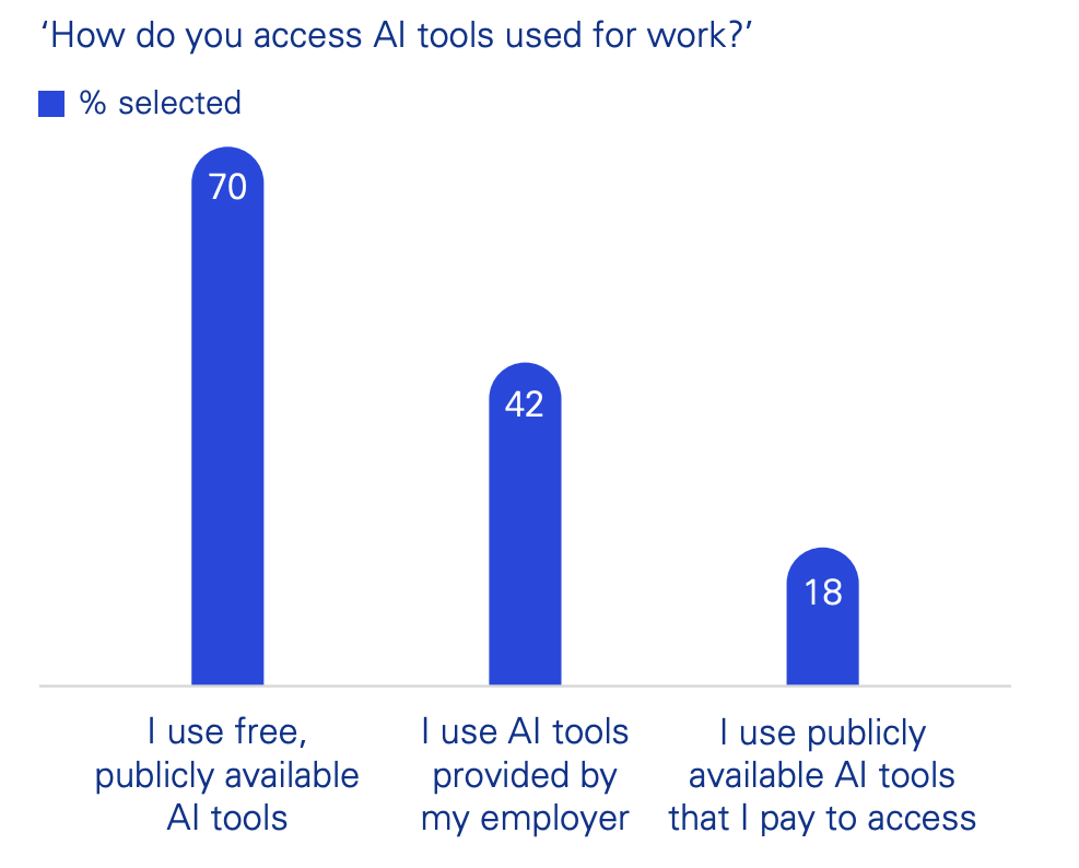 KPMG then asked people how they accessed those AI tools. See Figure 2, below.