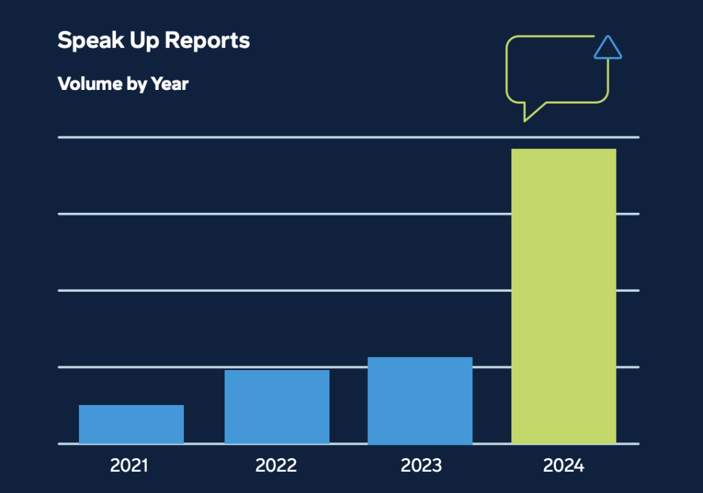 Second, it revamped the interface of the internal hotline to give employees more transparency into the internal reporting system. Every employee who submits a report now gets real-time updates on the status of their submissions, as well as access to a private dashboard where they can review and track their reports. All employees also now have access to a broader array of internal reporting data, including volume of reports received and outcomes of reporting.