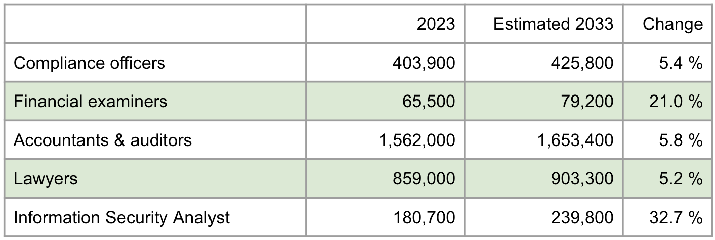 That kinda sorta sounds like what an ethics and compliance officer does, although it also feels like it misses a lot of the job. Meanwhile, I did include auditors, lawyers, and IT analysts in Figure 1 because clearly at least some of them handle ethics and compliance issues; but those BLS numbers don’t tell us exactly how many. And of course, none of those numbers include compliance officers elsewhere in the world, who all should be in the total too.