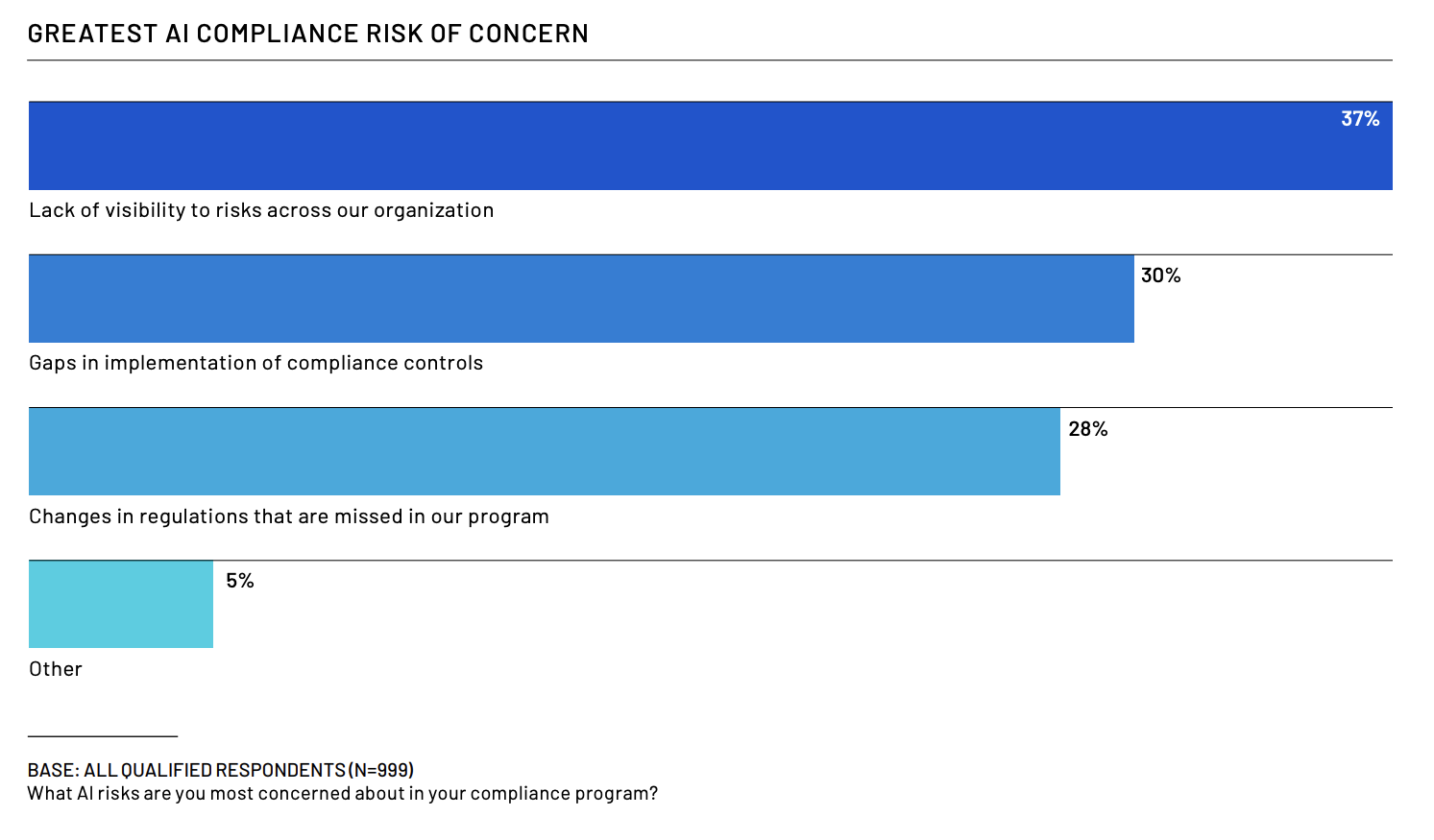 And from that first worry naturally flows the second: concerns about gaps in implementation of compliance controls for AI. If you’re not sure that you know all the AI risks in your enterprise, of course you’d then worry that your controls structure is no longer aligned to the risks.